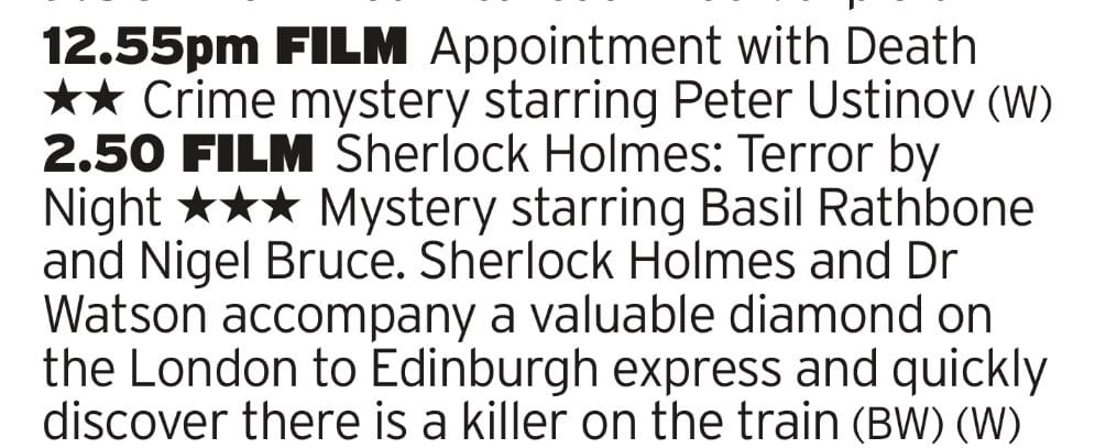 More Poirot! This is Ustinov‘a last in the roll which wasn’t exactly a big send off; 6 years after his last go at the role, directed by Michael Winner and from Cannon Films. That last one meant that the budget didn’t match the previous films in the series so has much more of a TV feel about it. Still, it’s a good murder mystery for the afternoon before getting some more Basil Rathbone Sherlock Holmes all up in your face