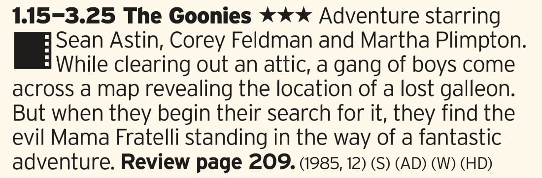 80s movie royalty here with one of the best kids adventure romps of the decade. My main query with it being on so early in the day is how they’ll handle all the potty mouth kids who spend most of the film swearing up a storm